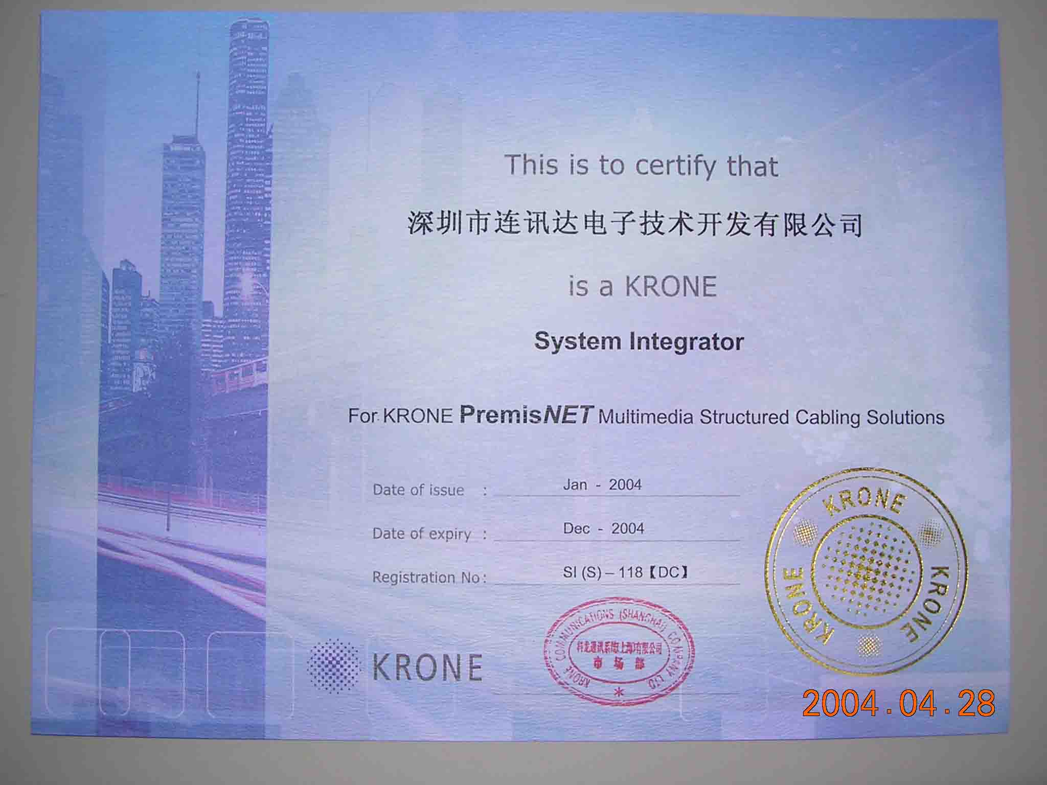 深圳市連訊達(dá)電子技術(shù)開發(fā)有限公司成立于1998年,隸屬于連訊國際集團(tuán) , 是專業(yè)提供網(wǎng)絡(luò)安全、網(wǎng)絡(luò)維護(hù)與故障診斷、測試方案、測試儀器儀表供應(yīng)及國際品牌智能布線產(chǎn)品供應(yīng),工程測試驗(yàn)收,工程師技術(shù)培訓(xùn)服務(wù)的高新技術(shù)企業(yè)。深圳連訊同時(shí)也是德國賽博、加拿大,美國光波、美國貝迪公司,美國兄弟的分銷商,負(fù)責(zé)美國福祿克FLUKE公司,德國賽博公司、加拿大EXFO公司、美國光波,美國貝迪公司,美國兄弟在大中華地區(qū)的銷售、技術(shù)支持、培訓(xùn)與售后服務(wù)等工作。